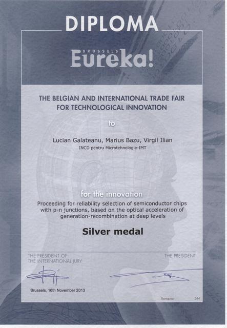 Gold medal: Miniaturized impedimetric sensor for pesticides detection, Authors: Carmen Moldovan, Bogdan Firtat, Rodica Iosub, Daniel Necula, Radu Cornel, Cecilia Codreanu (IMT Bucharest, L2) |