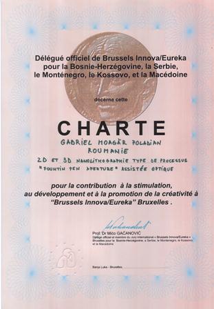 -The prize of the delegation representing Bosnia-Herzegovina, Serbia, Montenegro, Kosovo and Macedonia – for the contribution to the stimulation, development and promotion of the creativity at “Bruxelles Innova / Eureka”, Bruxelles.