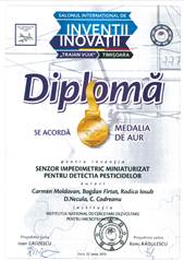Diploma and Gold medal for the invention Sensitive oxyfluoronanocarbon layers for resistive humidity sensing, Authors: Bogdan-Cătălin Șerban, Octavian Buiu, Maria-Roxana Marinescu.
