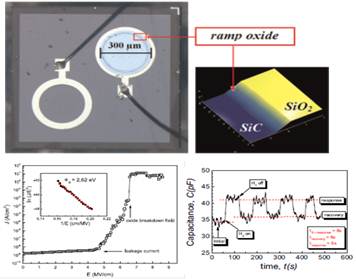 - SiC MOS capacitors have been fabricated and electrically investigated on a wide range of temperature between 14 –500 K;