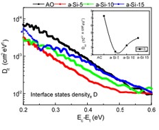 - The interface states density distribution on a wide range of energy levels has been determined, showing six peaks that can be related to the active electrical defects on both shallow and deeper levels in SiC band gap.