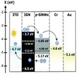 - The plasmonic Schottky optical detectors show an enhanced photocurrent, responsivity and external quantum efficiency (EQE) under zero bias conditions, attributed mainly to the increased photo-induced carrier injection and high electric field distribution surrounding the nanowires, as demonstrated by the simulation results.