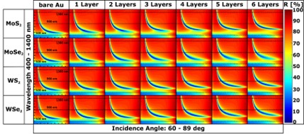 - It was shown that refractive indices of barium titanate (BaTiO3) and silicon (Si) are the closest to the optimal indices for the silver—graphene/WS2 and MoS2 modified structures, respectively. Sensitivities up to 302 deg/RIU were achieved by Ag–BaTIO3–graphene/WS2 configurations with an FWHM smaller than 8 deg and a reflectivity level less than 0.5% at resonance.
