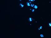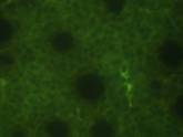 UV fluorescence image of B16 melanoma cells after uptake of gold coated maghemite superparamagnetic nanoparticles, which revealed cellular uptake of gold nanoparticles (x 60) |