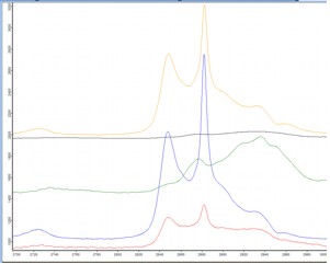 About 800 cm-1 – spectral band which can be attributed to the vibration mode of the P-O bonds within the lipids and nucleic acids.