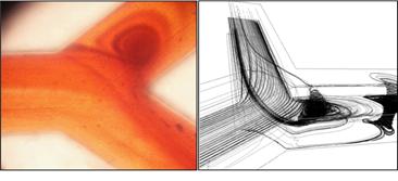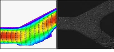 Often the microfluidics CFD methods (Microchannel Flow Physics) consist of direct comparison of local flow field characteristics with numerical computations. Within our laboratory the experimental methods used for microscopic flow visualizations are based on (i) contrast substances – for a qualitative representation of the pathlines distributions, and also (ii) Micro-PIV measurements – which put in evidence the local hydrodynamic behavior of a steady fluid flow, with quantitative measurements of the velocity profiles and vortical structures identification (secondary flows).