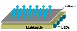 A theoretical framework for finding the optimal distribution of scattering elements in an edge-lit light guide plate (LGP) presenting intrinsic absorption losses for rendering a uniform distribution of the outcoupled light has been elaborated. Based on a simple mathematical model describing the light propagation in an LGP with a distribution of scattering elements located on its lower surface, a relation giving the distribution of scattering elements leading to a uniform irradiance along the LGP has been found. |