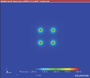 We performed design/simulations with CoventorWare software for thermal transfer of the embossing steps for two types of tools (Ni-Shim tool with 25 pixels and 4 pixels 40x40um tool) and considered a polymeric substrate with high