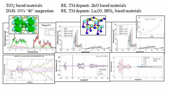 | Modeling of defects and dopants contribution in tailloring the structures, the electronic, optical, transport and spin properties of materials. |