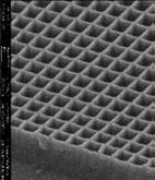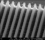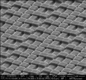 a) lines with 1/3 fill factor (aspect ratio 20:1) ; b) pillars (aspect ratio 6:1) |