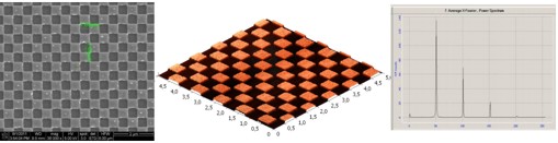 - fabrication of 2D and 3D nanostructures intended to be used as calibration gratings for optical microscopy, AFM and STM with better than 100 nm accuracy |