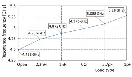 Fig. 4. Dependence of the rejection frequency of the circuit in Fig. 3 on type and value of load impedance ZL. |