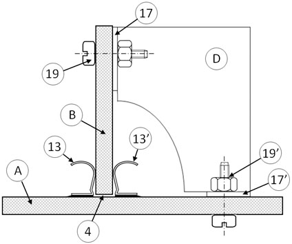 V. Buiculescu, S. Iordănescu, “Method and devices for detachable assembly of electromagnetically coupled substrate integrated guide circuits”, pending patent A00659, 20 October 2022 Abstract Removable assembly method for structures consisting of two or more circuits with substrate integrated waveguide (SIW) transmission lines electromagnetically coupled through transverse slots with a main SIW circuit, and mechanical elements enabling this assembly method are presented. The method is applicable for reducing the physical length of one or more of the coupled SIW circuits to modify the electrical characteristics of the entire electromagnetically coupled SIW assembly, e.g. operating frequency of resonant sensors or rejection frequencies in SIW filters. According to the invention, detachable assembly of two coupled SIW circuits (A) and (B) requires (i) elastic metal elements (13) and (13') mounted in symmetrical positions with respect to the coupling slot (4) of the main SIW circuit to ensure stability of the assembly’s electrical properties, and (ii) the clamp (D) to hold the coupled SIW circuits in a stable relative position and to stiffen the whole structure by means of pairs of bolts and nuts (19) and (19') passing through the oval slots in the fixing flanges (17) and (17') of the clamp (D) and through the metal plated side walls of the coupled SIW circuits (A) and (B). |