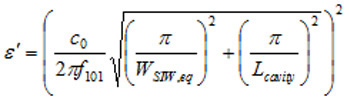 S-a propus un model matematic care este valabil pentru valori de permitivitate complexa a esantionului si chiar foarte diferite fata de cele ale materialului de substrat al ghidului SIW. Determinarea permitivitatii complexe esantionului se bazeaza pe caracteristica unei cavitatii rezonante in care se propaga modul fundamental TE101. Relatia care ne da valoarea permitivitatii cavitatii rezonante tine cont atat de permitivitatea FR4, cat si de permitivitatea esantionului: