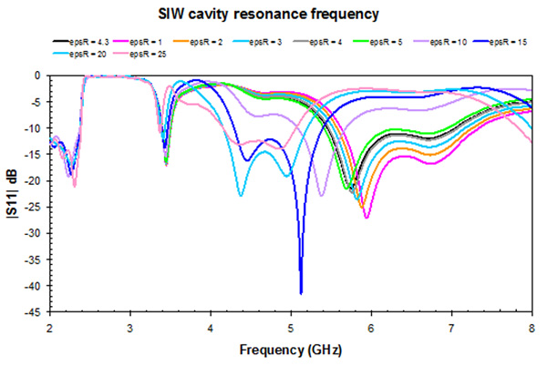 Abordarea teoretica a fost bazata pe observatia comportamentului parametrului de reflexie |S11|. Fig. 2 arata cum se deplaseaza frecventa de rezonanta a cavitatii atata timp cat marim valoarea permitivitatii esantionului.