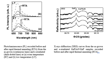 In a collaborative work comprising research groups from Romania, Japan and USA, 6-MeV electrons irradiation of a nearly lattice-matched P-rich GaPAsN-on-GaP epilayer, grown by molecular beam epitaxy, and subsequent rapid thermal annealing are found to induce much stronger photoluminescence than what is observed for an identical as-grown sample annealed in similar conditions. At the same time, exciton localization at low temperatures decreased and alloys crystallinity improved. These irradiation-related phenomena occured without change in the alloy macroscopic composition as revealed by X-ray diffraction. The next step is to apply this important finding for improving the optical performance of a solar cell structure including this GaPAsN quaternary alloy.