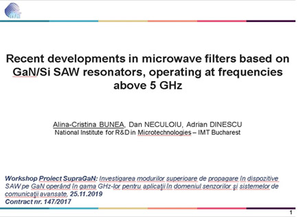 Alina-Cristina Bunea – “Recent developments in microwave filters based on GaN/Si SAW resonators, operating at frequencies above 5 GHz”