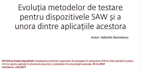 Valentin Buiculecu – “Evolutia metodelor de testare pentru dispozitivele SAW si a unora dintre aplicatiile acestora”