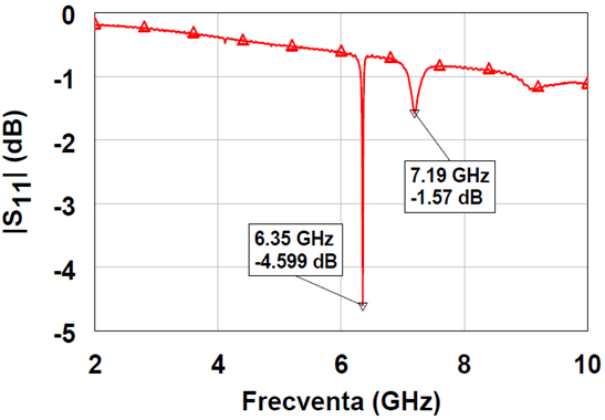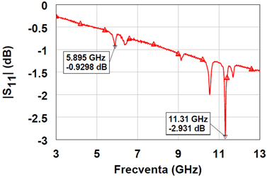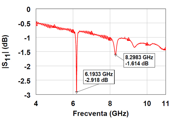Structurile SAW obtinute au fost caracterizate prin măsurarea coeficientului de reflexie S11 cu un analizor vectorial de rețea (Fig. 10).