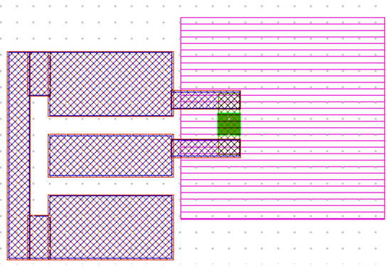 Modelarea măştilor a fost realizată pentru diferite structuri SAW, utilizând programul dedicat, CleWin. Măştile au fost realizate în IMT Bucureşti, pe echipamentul DWL 66. Superpoziţia celor trei măşti proiectate este prezentată în Fig.1 (a).