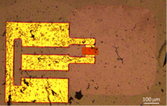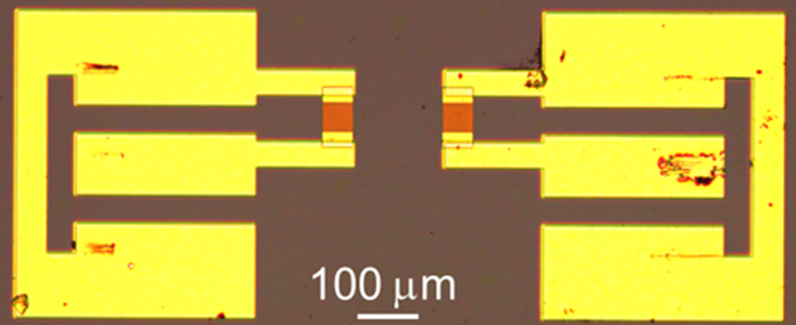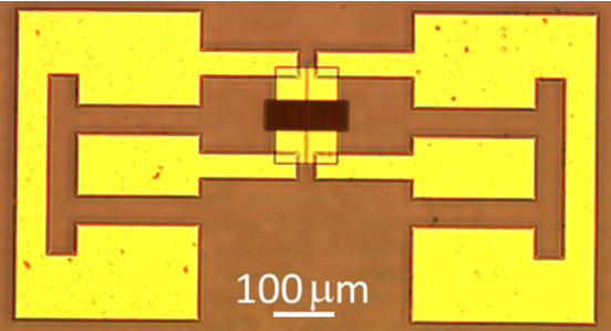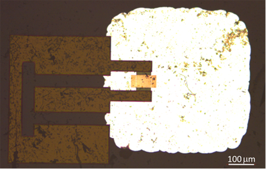 Pentru realizarea acestor tipuri de structuri au fost utilizate plachete de GaN/Si comercializate de NTT AT Japan. Structurile SAW single resonator au fost fabricate utilizand procesul de litografie e-beam. Traductorul interdigitat (IDT) are 150 de digiti si 50 de reflectoare cu o lungime de 50 μm. O metalizare de Ti/Au de 5 nm/75 nm a fost utilizata pentru IDTuri. Dupa realizarea procesarii pe fata, o masca de spate cu o arie de 500 μm x 500 μm a fost aplicata, centrata pe suprafata IDT-urilor (Fig 8, 9).