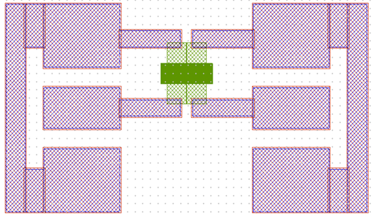 Fig 1. Layout-ul pentru structurile SAW de tip “face to face” realizate pe membrană de GaN de 1,2 μm grosime și arie de 500 μm x 500 μm |