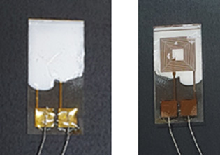 Photo image of the UV sensor based on ZnO-polymer composite. Left: image from above; Right: image from back of the sensor