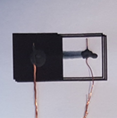 Photo image of the optimized , “toy”-like infrared detector (bolometer). It has a 0.1 % resistance variation when looking at a 5 cm diameter blackbody at 100 oC from a distance of 50 cm.