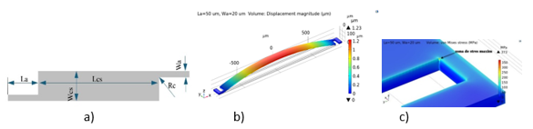 - Geometria și dimensiunile structurilor simulate: corpul celulei și cele două ancore laterale – Fig 1a